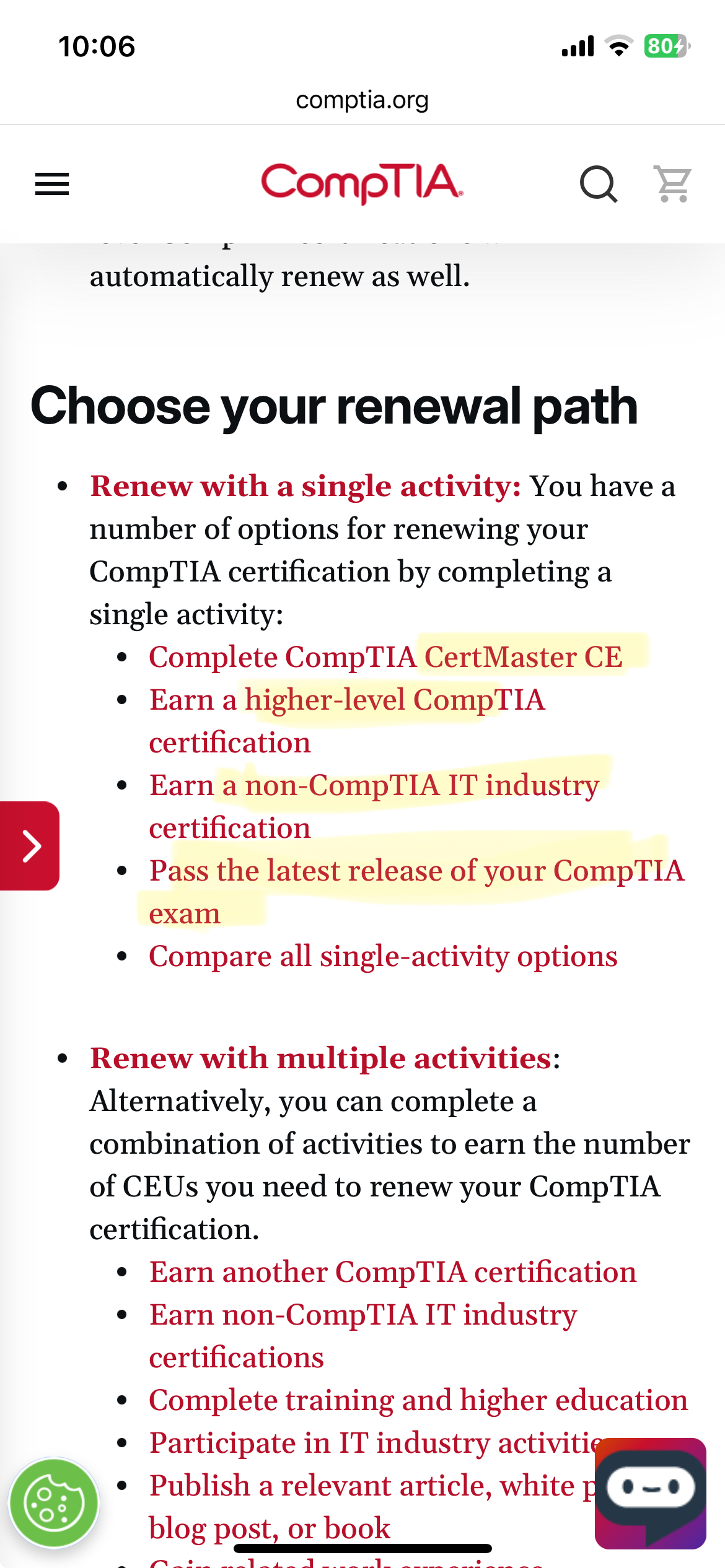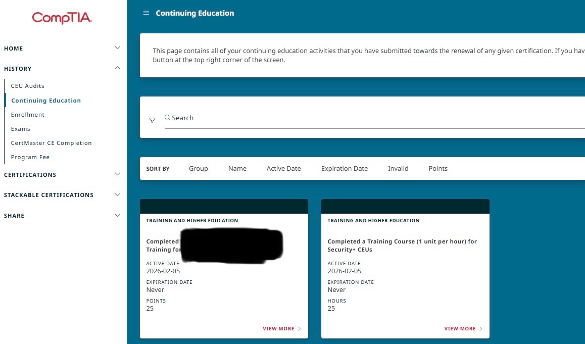 그리고 "CEU 서류 넣으면 자동으로 갱신된다"는 말을 reddit에서 본 적이 있는데. 이건 반만 맞는 말이다. pre-approved 활동이나 CertMaster CE 완료의 경우엔 실제로 자동으로 갱신 처리가 된다. 근데 일반 CEU 제출 방식은 CompTIA 측에서 서류를 검토하는 과정이 있고. 재수 없으면 Pending Post Review, 즉 audit 대상이 된다. 나처럼… 🥲
